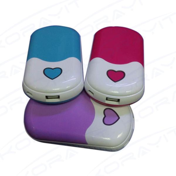 Lovely Heart Design Derogatory Round Plastic Portable Power Bank 7800mAh, Promotional Gift Images |